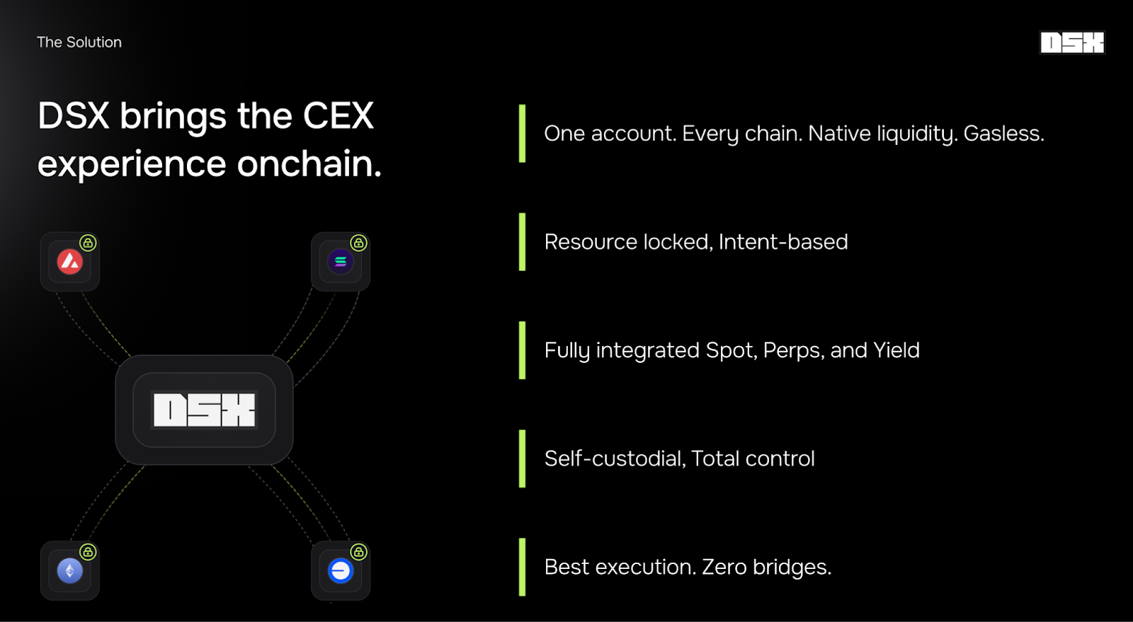 DSX is a blueprint for how the next generation of DeFi products should be built; user-first, chain-abstracted, and truly accessible, setting a new standard for what crypto UX should look like.